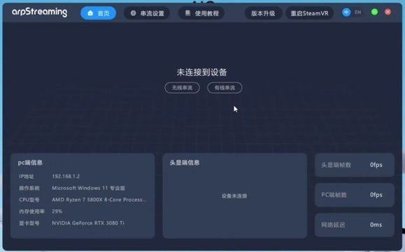 通过arpStreaming(网上找到的串流软件截图,与将在未来推出的正式版本可能会存在差异。)就可以使用有线串流的方式连接PC端的SteamVR平台了,并调用SteamVR端的VR播放器进行超清2D、3D以及VR视频的播放,百度网友为您回答。