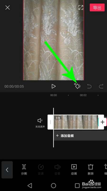 在手机打开剪映,点击开始创作添加视频,点击下方小视频,点击播放旁边的,菱形图标点击菱形图添加关键帧最后导出。