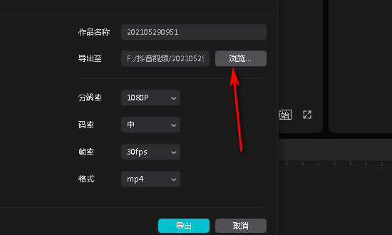 3、点击导出之后,弹出保存窗口,点击导出至右侧的浏览,如下图所示: