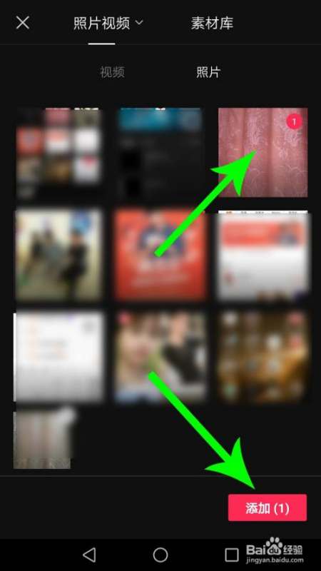 剪映首页单击“开始创作”,勾选图片素材后单击“添加”。