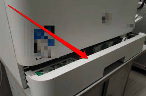 1、复印机的纸盒都在主机下方,找到打印机纸盒的拉动开du关。