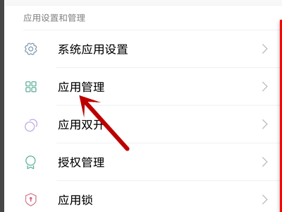 2、进入设置界面,点击【应用管理】选项。