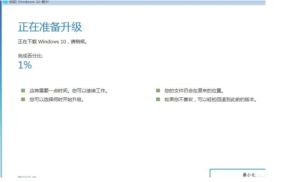 2. 下载官方win10系统到电脑,手动进行更新检测,安装,免费升级win10。