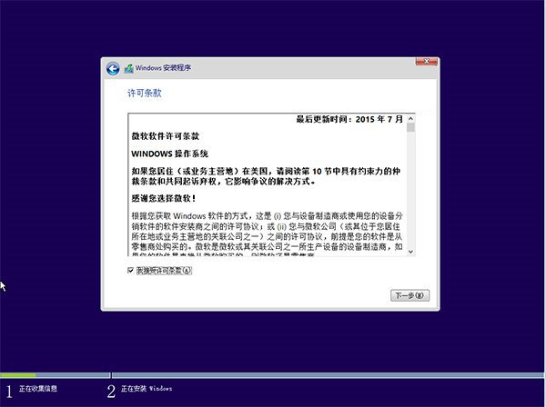 9,勾选“我接受许可条款”后,点击“下一步”继续。