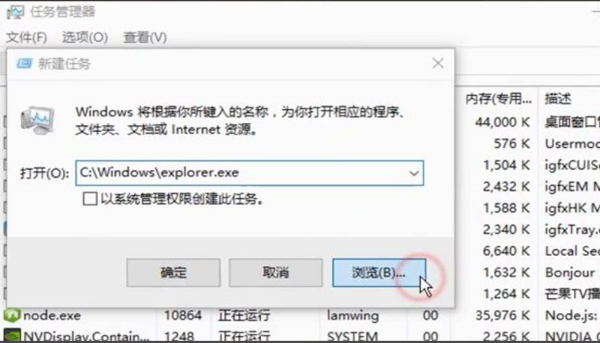 5、选择“explorer”,然后点击“打开”,之后选择“确定”就可以了。