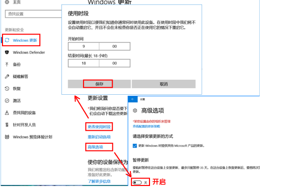 在【更新设置】选项下点击【更改使用时段】,设置想要避开系统更新的时间段,点击【保存】。