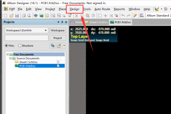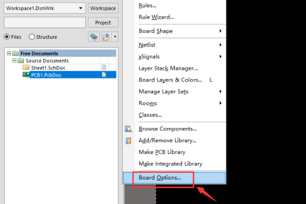 4、然后,单击设计菜单中的板上选项【board options】进入,如下图所示,然后进入下一步。