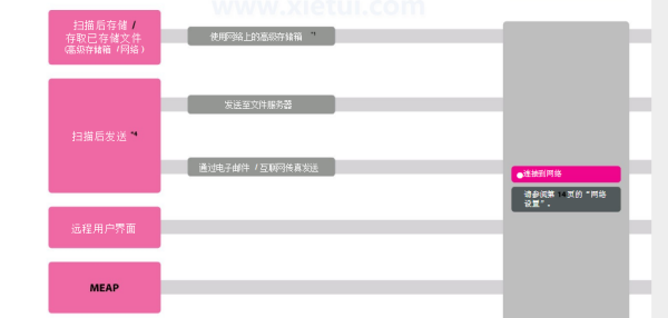 认功能使用 ( 不需 传真 扫描后存储 *1/ *3 要使用分发服务器注册 / 更新软件,需要执行本流程图中的“连接到网络”和“网络设置”。
