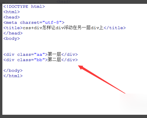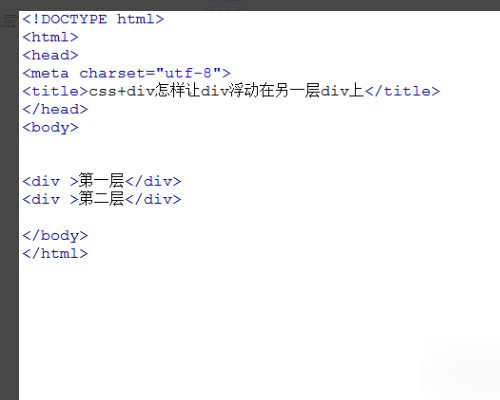 2、在test.html文件内,创建两个div,分别为“第一层”和“第二层”。