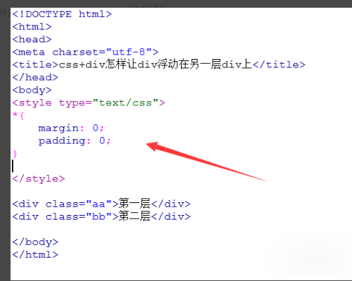 4、在test.html文件的css标签内,使用css初始化页面所有元素的内外边距,设置为0。