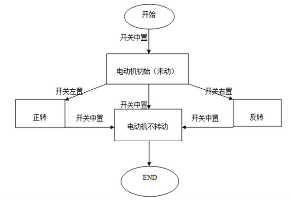 将单刀双掷开关置向左边电动机开始正转,将开关置向右端电动机开始反转,将开关置向中间位置电动机停止转动。