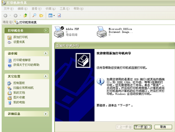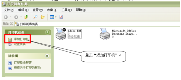 1、依次单击“开始”——>“设置”——>“打印机和传真”,即可进入如下界面:
