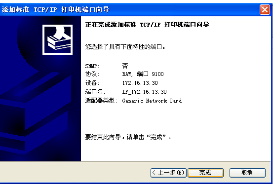 Port”,选择完成单击“下一步”按钮,系统会自动创建标准的TCP/IP打印机端口: