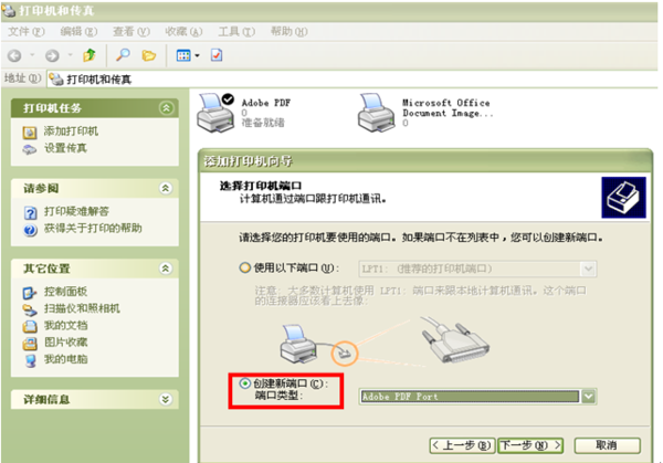 4、选择打印机端口——>该处选择“创建新端口”,并在端口类型中选择“Standard