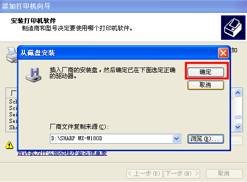 点击‘浏览’按钮,加载保存在本地磁盘上的驱动程序,如D:\SHARP
