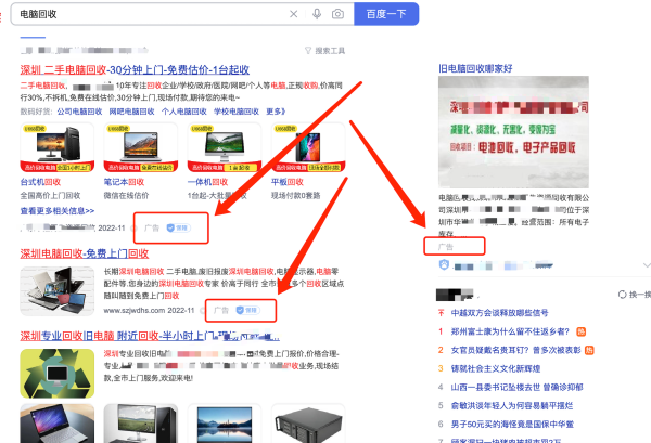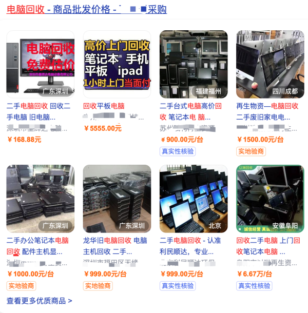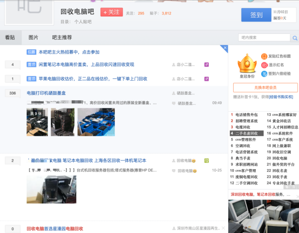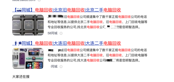 二、很多小伙伴还有疑问,这三个没有标注“广告”字样,可不可以用上面的回收商?先看图:某同城、某采购、某回收贴吧,同样不行,商家质量参差不齐,不好挑选;