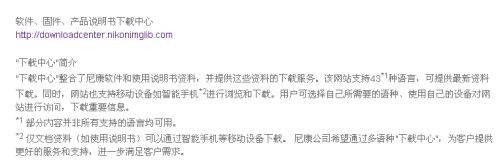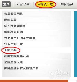 进入尼康中国的官方网站,选择支持及下载——下载中心