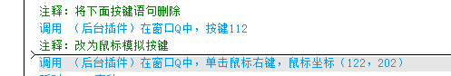 Call Plugin.Bkgnd.KeyPress(Q, 112)【调用(后台插件)在窗口Q中,按键112】