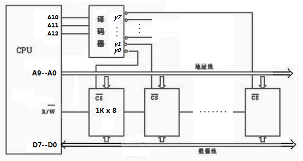 低10根地址总线与每片芯片的A0~A9直接相连,称片内地址线;