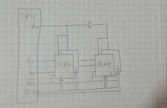用1K×4位的RAM芯片构成2K×8位的存储器,画出CPU和存储芯片的连接图.
