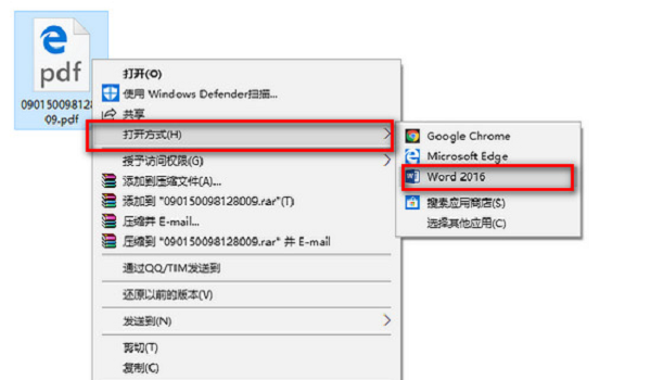 2. 右键刚刚下载的电子发票文件——”打开方式“——”word2016“。