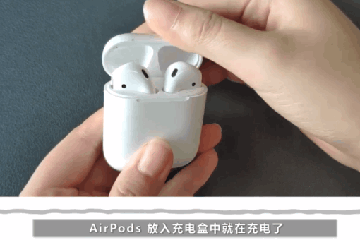 需要把AirPods放入耳机的盒子中,即可开始充电,具体方法如下: