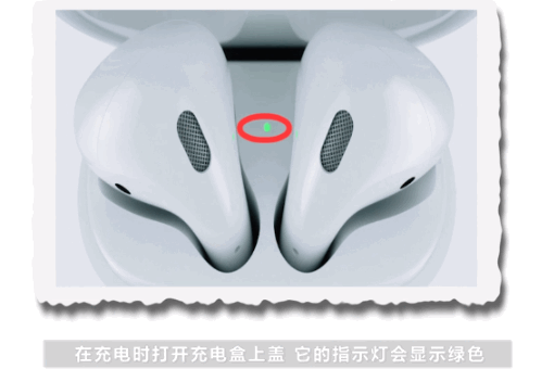 3、在充电时打开充电盒上盖,它的指示灯会显示绿色。