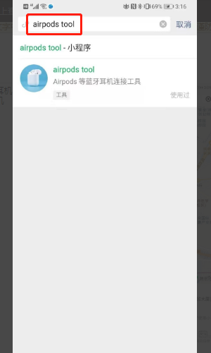 1、将airpods pro放入充电盒中,通过微信搜索小程序airpods tool。