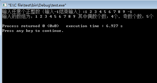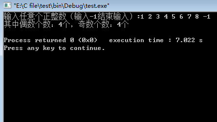 printf("其中偶数个数:%d个,奇数个数:%d个\n",even,odd);