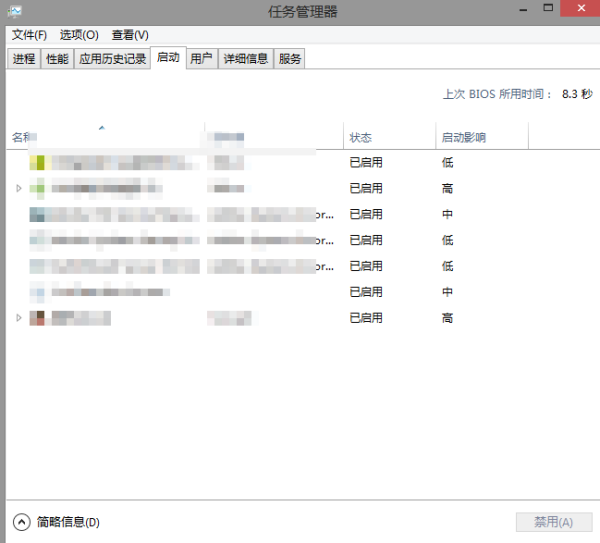2、在任务管理器中,切换到“启动”选项,这里就能对win10系统的启动项进行设置了。