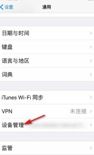 7、在通用界面,点击【设备管理】-【信任设备】,然后回到主界面,点击软件,然后登陆微信即可。