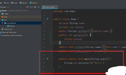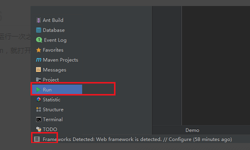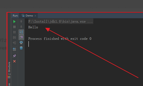 2、选择“Run Demo main()”,点击运行之后,可以看到控制台出现了,并打印出Hello的信息。