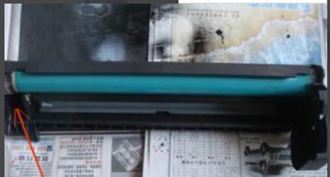 把硒鼓取出来在硒鼓原来位置的左上角找一个银白色的拨片拨动几下,硒鼓上的金属点用纸巾擦一下再放回。