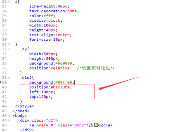 2)将按钮设置为绝对定位,设置左边的距离,顶部的距离