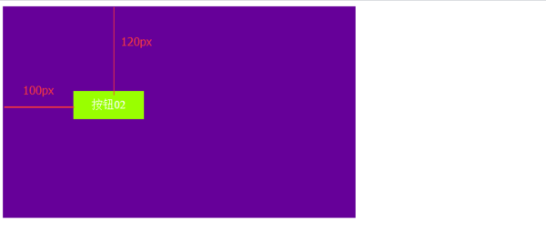 3)运行查看结果:按钮02 离左边100px ,顶部120px