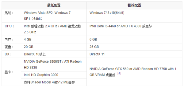 最低配置: CPU:双核心(英特尔奔腾4 3.0 GHz的英特尔Core 2.0 GHz的处理器, AMD速龙3200 +或更快) 内存: 1 GB 显卡:NVIDIA GeForce 7800 /ATI Radeon 1800或更高;256 MB显存 系统:Windows XP 硬盘:10 GB可用硬盘空间 推荐配置 CPU:4核或双核心(英特尔Core 2.8 GHz的处理器, AMD速龙64 X2 4400 +或更快) 内存:2 GB内存 显卡:NVIDIA GeForce 8800GT /ATI Radeon 4850或更高;512 MB显存 系统:Windows XP或Windows相关文章