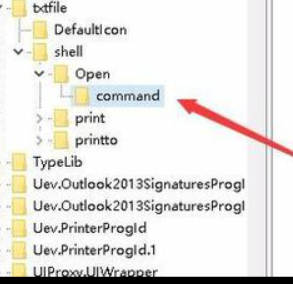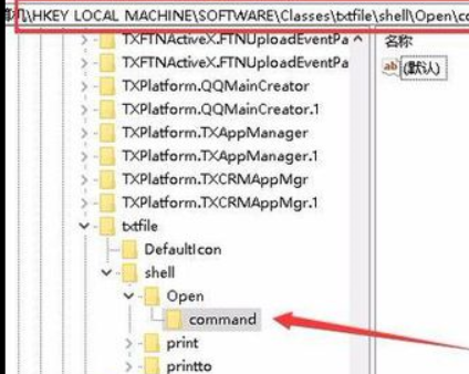 在打开的注册表编辑器窗口中,定位到HKEY_CLASSES_ROOT\txtfile\shell注册表项