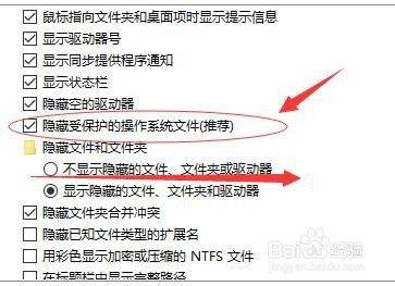 去掉“隐藏受保护的操作系统文件(推荐)”前面的勾,选中“显示所有文件和文件夹”