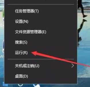 在Windows10桌面,右键点击桌面左下角的开始按钮,在弹出菜单中选择“运行”菜单项