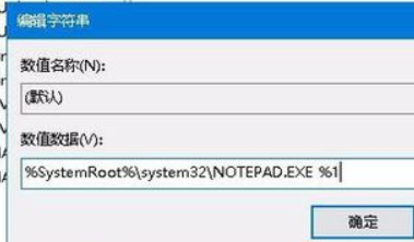 然后在编辑字符串窗口中,把数值数据修改为%SystemRoot%\System32\Notepad.exe %1,最后点击确定按钮。