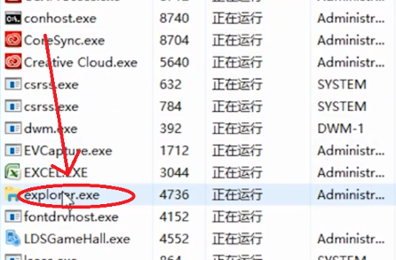 2、会出现进程栏,在进程栏里找到“explorer.exe”。
