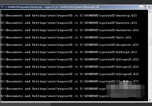 2、在命令行中输入: for %1 in (%windir%system32*.dll) do regsvr32.exe /s %1 ,在这里我们可以先将此命令复制,然后利用cmd命令编辑的粘贴到命令行中。