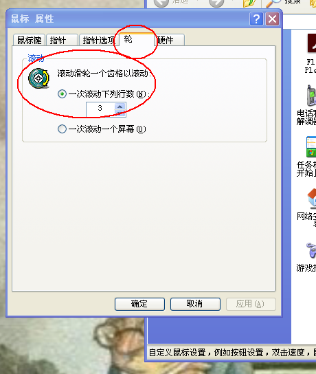 设置的原因就直接从控制面板进去,在控制面板里面找到【鼠标】,在【鼠标】上双击打开鼠标设置,在【轮】选项里,滚动滑轮一个齿轮以滚动>第一个选项一次滚动下列行数。修改一下行数为3、4或者不用修改,点一下确定。