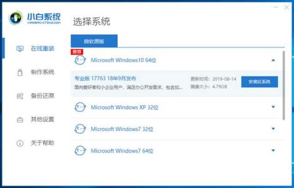 5、如果没有系统升级包的推送,也可以使用小白一键重装系统安装一个版本更新的系统。
