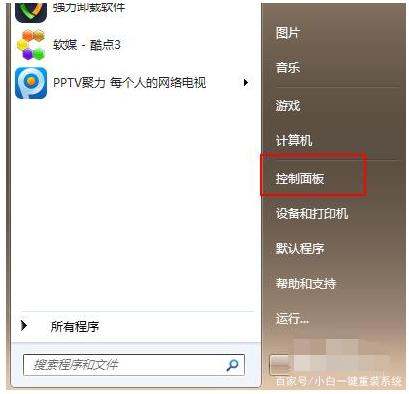 1、打开“开始菜单”,选择“控制面板”。