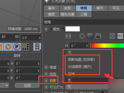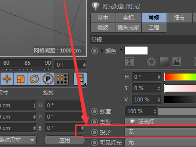 5、投影为了方便观察灯光阴影位置,一般需要把投影打开