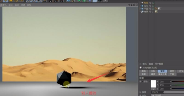 c4d投影很实很硬,灯光设置的区域投影,看别人做出来的是虚边投影,自己做的时候投影变成了很生硬的硬边