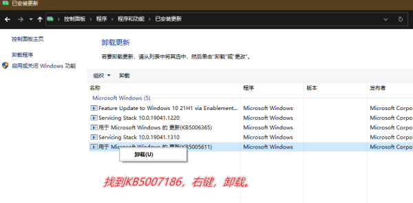 如果是win1021H1,那么极有可能是最近的那个安全补丁搞的鬼,卸载掉即可