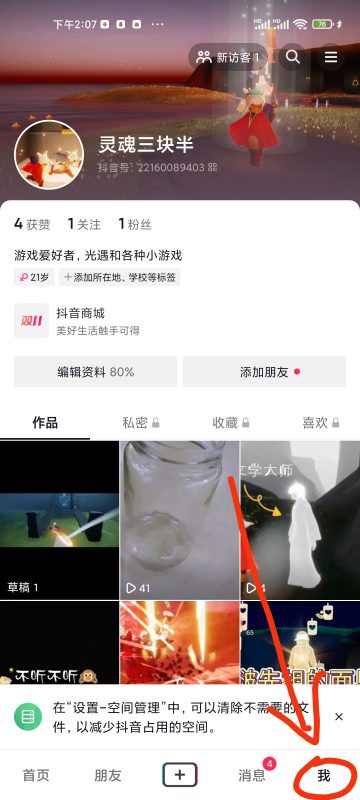 1、在抖音的个人的主页界面中,选择青少年守护中心。