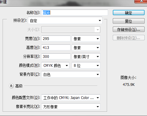 二、再新建一个画布,预设:自定;宽度295像素高度413像素;分辨率300;颜色模式cmyk,拖入照片,可以把照片进行美化,祛痘磨皮,这边不详细介绍(或者各种美图软件进行修饰一下)。